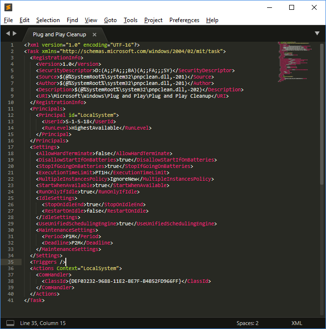 The task references 'pnpclean.dll' which is responsible for performing the cleanup activity additionally we see that the ‘UseUnifiedSchedulingEngine’ field is set to ‘TRUE’ which specifies that the generic task scheduling engine is used to manage the task. The ‘Period’ and ‘Deadline’ values of 'P1M' and 'P2M' within ‘MaintenanceSettings’ instruct Task Scheduler to execute the task once every month during regular Automatic maintenance and if it fails for 2 consecutive months, to start attempting the task during. This section was copied from here.