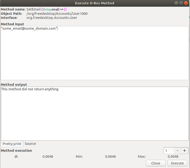 Figure 3. Calling D-Bus Methods through D-Feet