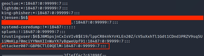 7- Receiving the new /etc/shadow file showing attacker007 is successfully added