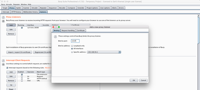 Add a proxy in Burp Suite to listen.