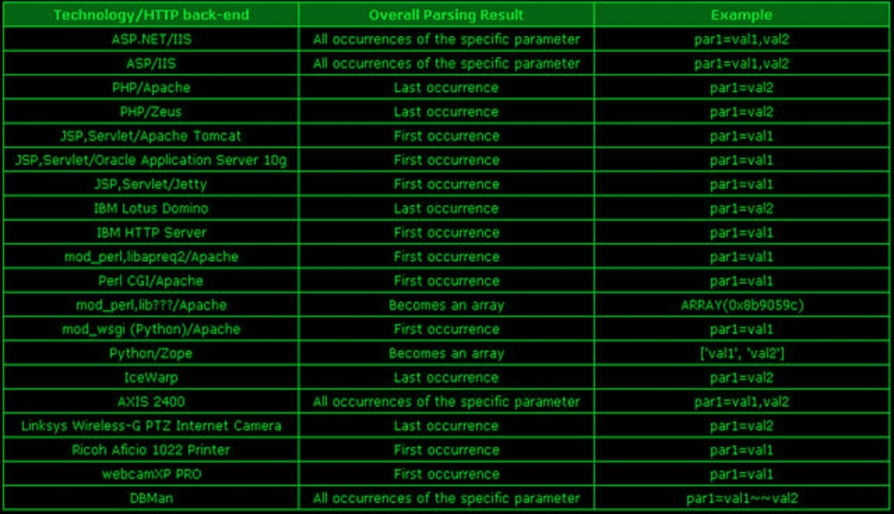 When you manipulate any parameter, it’s manipulation depends on how each web technology is parsing their parameters. You can identify web technologies using “Wappalyzer”. Below is the screenshot of some technologies and their parameter parsing.Technologies and their parameter parsing