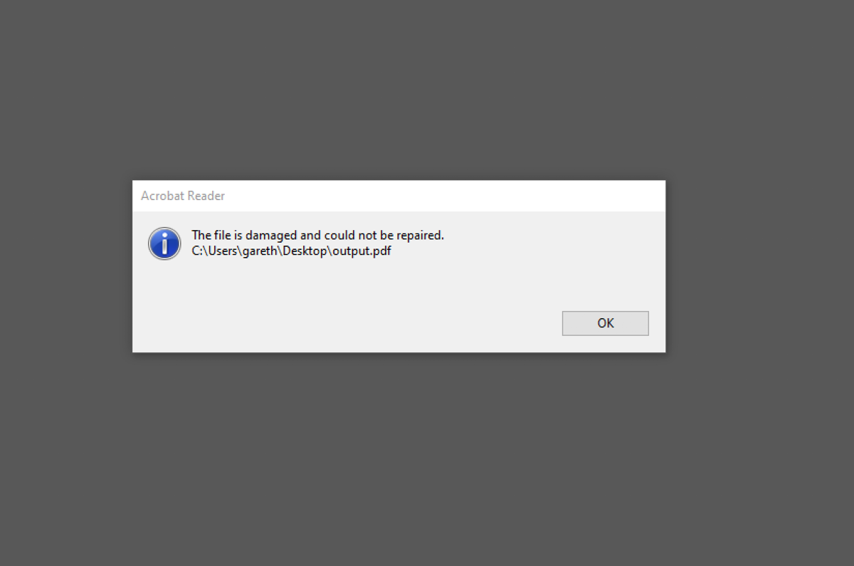 Just like how XSS vectors depend on the browser's parsing, PDF injection exploitability can depend on the PDF renderer. I decided to start by targeting Acrobat because I thought the vectors were less likely to work in Chrome. Two things I noticed: 1) You could inject additional annotation actions and 2) if you repair the existing closing parenthesis then the PDF would render. After some experimentation, I came up with a nice payload that injected an additional annotation action, executed JavaScript, and repaired the closing parenthesis:/blah)>>/A<</S/JavaScript/JS(app.alert(1);)/Type/Action>>/>>(