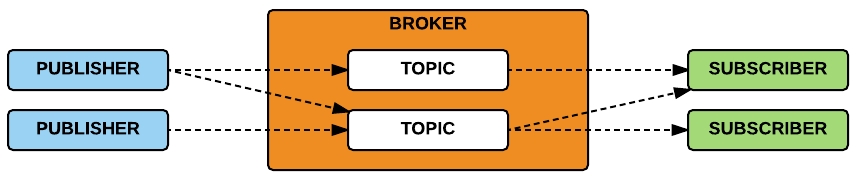 - Publisher: publishes a message to one (or many) topic(s) in the broker.