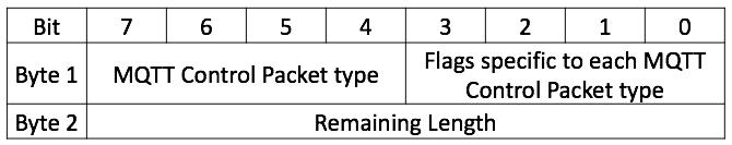 Every MQTT packet contains a fixed header (Figure 02).Figure 02: Fixed Header