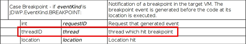 - Event/Composite forces the JVM to react to specific behaviors declared by this command. This command is a major key for debugging purposes as it allows, among many other things, setting breakpoints, single-stepping through the threads during runtime, and being notified when accessing/modifying values in the exact same manner as GDB or WinDBG. - Not only does JDWP allow you to access and invoke objects already residing in memory, it also allows you to create or overwrite data.