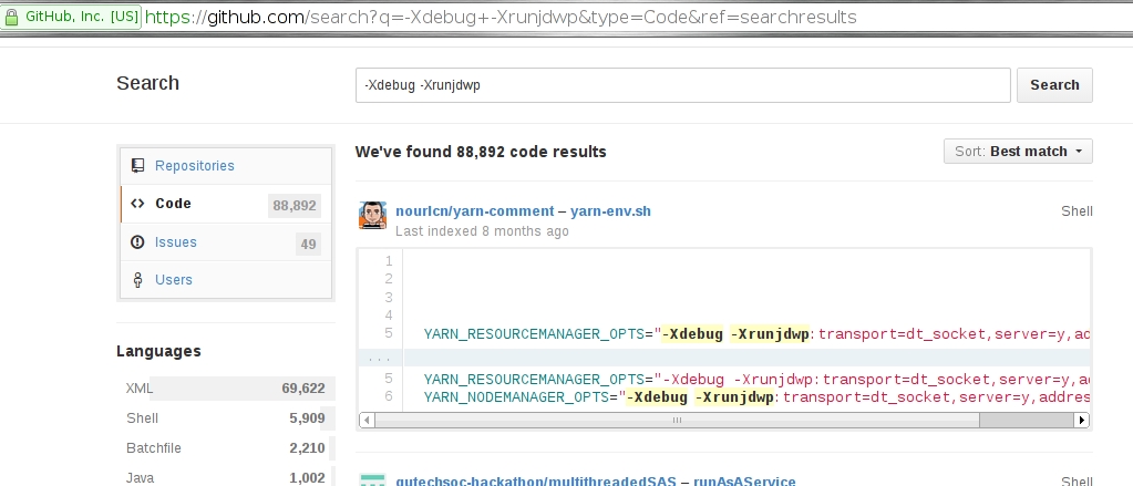 An experienced security auditor may have already realised that such a simple handshake offers a way to easily uncover live JDWP services on the Internet. Just send one simple probe and check for the specific response. More interestingly, a behavior was observed on the IBM Java Development Kit when scanning with ShodanHQ[4] with the server “talking” first with the very same banner mentioned. As a consequence, there is a totally passive way to discover an active JDWP service (this is covered later on in this article with the help of the (in)famous Shodan).