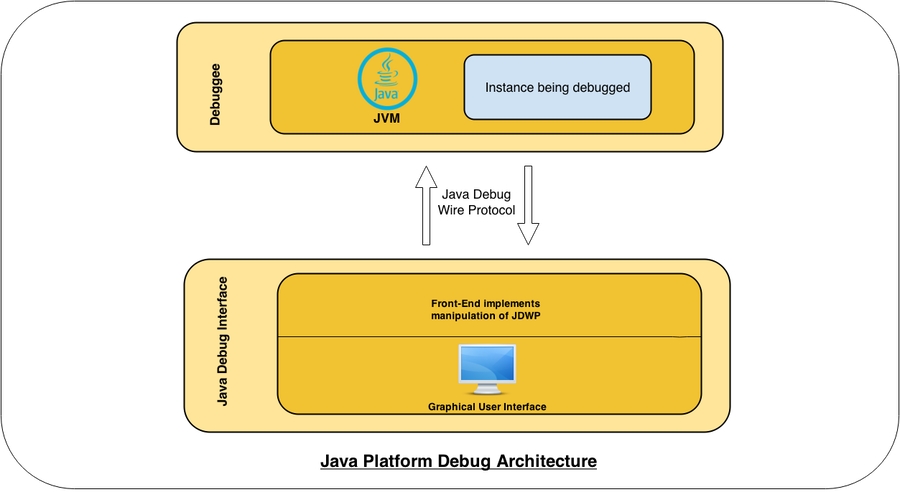 Java Platform Debug Architecture (JPDA)JDWP is one component of the global Java debugging system, called the Java Platform Debug Architecture (JPDA)[2]. The following is a diagram of the overall architecture: