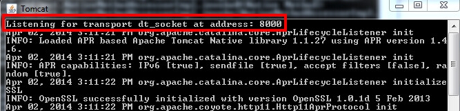 Et voilà !! Swift and easy. As a demonstration, let’s start a Tomcat running with JPDA “debug mode” enabled: