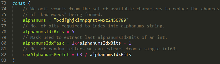 When looking inside the source code, it appears that the token is generated from only 27 characters “bcdfghjklmnpqrstvwxz2456789” and not 36 (a-z and 0-9)
