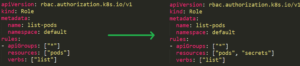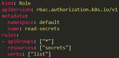 resources: ["*"] verbs: ["list"] – The ability to list any resource can be used to leak other users’ secrets and might make it easier to escalate privileges. An example of this is located in the “Listing secrets” section.