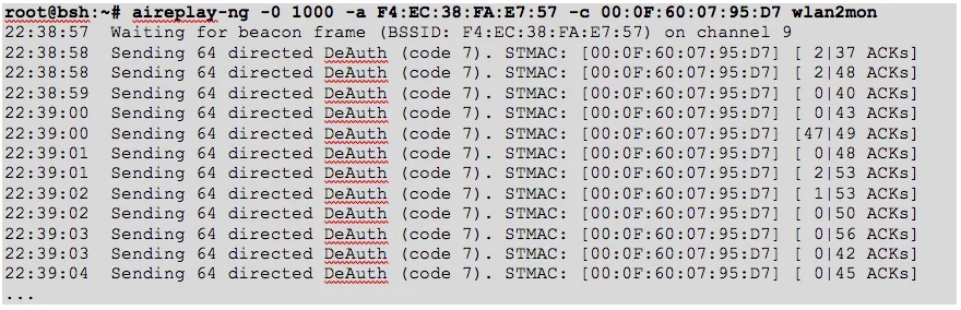 From the output, we can identify the access point BSSID (F4:EC:38:FA:E7:57) to which our victim (00:0F:60:07:95:D7) is connected to the WPA2-enterprise network named “enterprise” (ESSID).