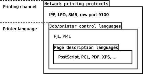 A schematic relationship regarding the encapsulation of printer languages is given below: